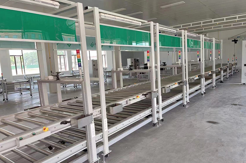 滾筒輸(shū)送線:廣(guǎng)泛應用於各行業的產品組裝,檢測,成品包裝箱、周轉箱的輸送。滾(gǔn)筒的形式有(yǒu):雙鏈輪錐型滾筒,O型槽錐(zhuī)形滾筒,普通錐形滾筒。筒體長度一般為500~1200mm;特(tè)殊(shū)規(guī)格可根據用(yòng)戶需要定作(zuò)。滾筒筒體有:鍍鋅、鍍鉻、不鏽鋼、PVC材料等。線體支架有:不鏽鋼、鋁型材、碳鋼噴塑等。輸送速度一般為10~30M/min;也可(kě)根據(jù)用戶需要采用變頻調速連續運行(háng)。主要(yào)輸送形式(shì)有:雙鏈輪(lún)滾筒式、0型帶傳動滾(gǔn)筒式(shì)、三角帶摩擦傳動滾筒式及自由式(shì)。